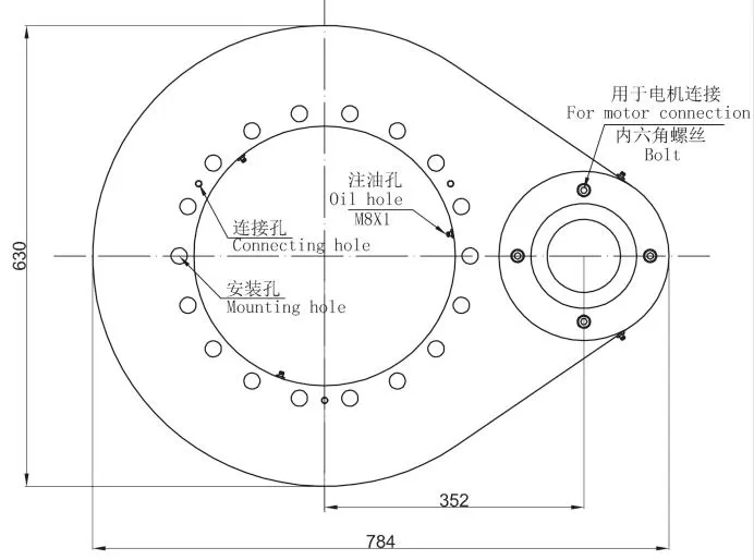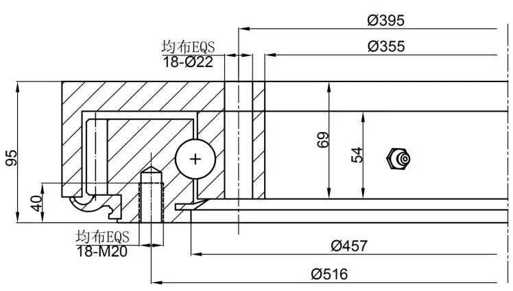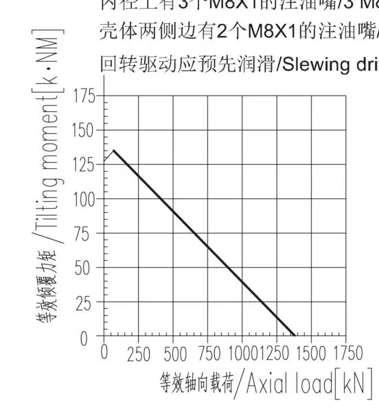 Lubrication of slewing drive; 3 M8X1 grease nipples on the inner ring; 2 M8X1 grease nipples on the housing; Slewing drive supplied pre-lubricated.