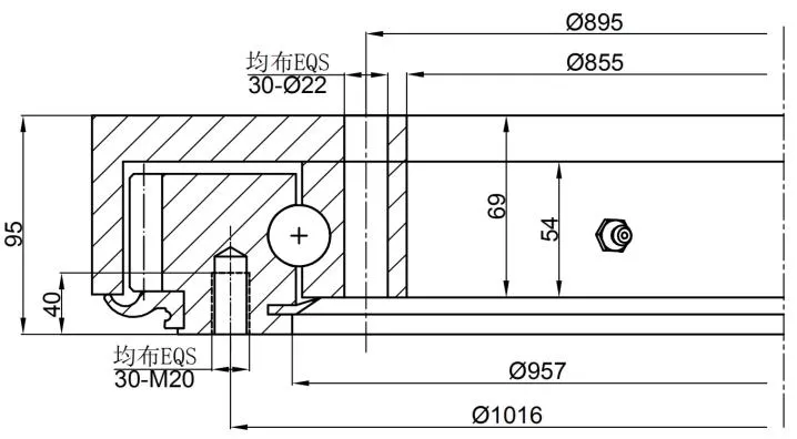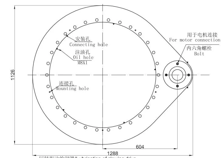 Lubrication of slewing drive; 3 M8X1 grease nipples on the inner ring; 2 M8X1 grease nipples on the housing; Slewing drive supplied pre-lubricated.