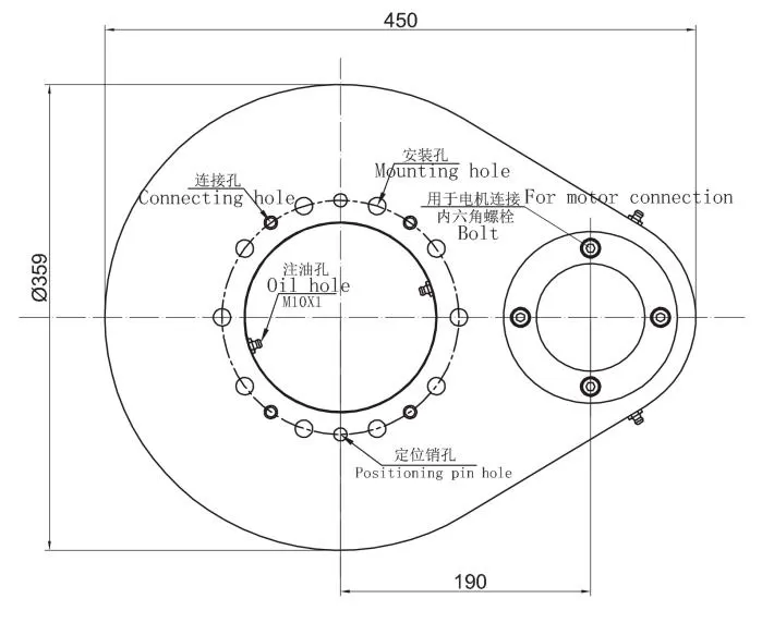 Lubrication of slewing drive; 2 M10X1 grease nipples on the inner ring; 2 M8X1 grease nipples on the housing; Slewing drive supplied pre-lubricated