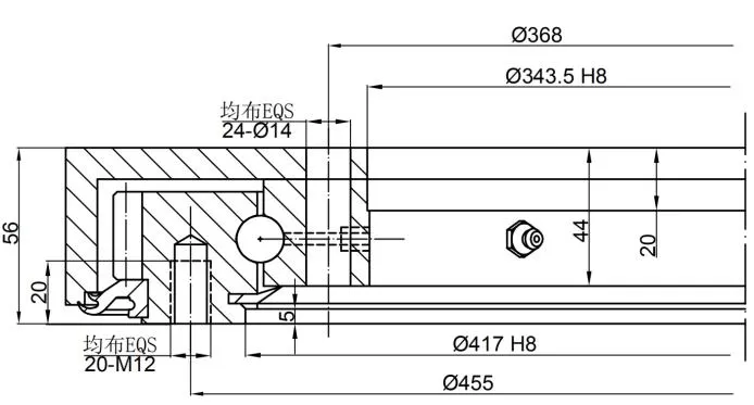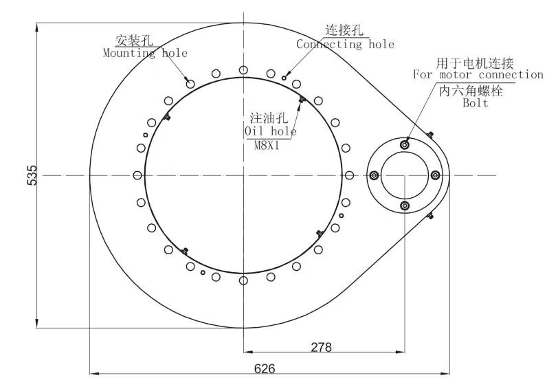 Lubrication of slewing drive; 4 M8X1 grease nipples on the inner ring; 2 M8X1 grease nipples on the housing; Slewing drive supplied pre-lubricated.