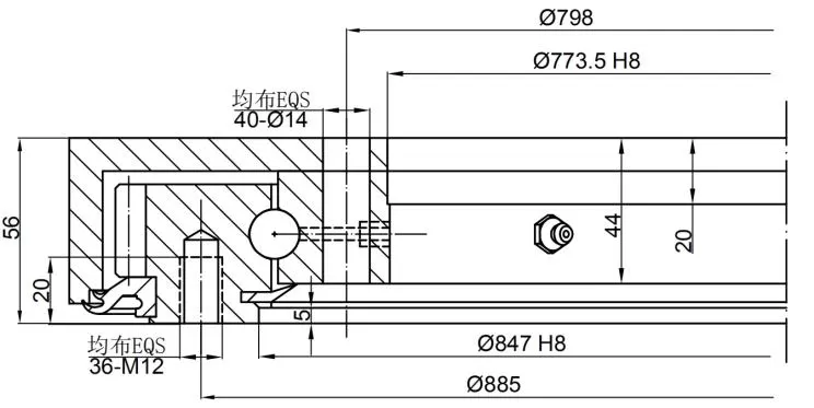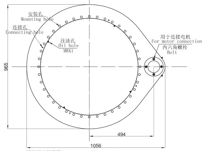 Lubrication of slewing drive; 4 M8X1 grease nipples on the inner ring; 2 M8X1 grease nipples on the housing; Slewing drive supplied pre-lubricated.