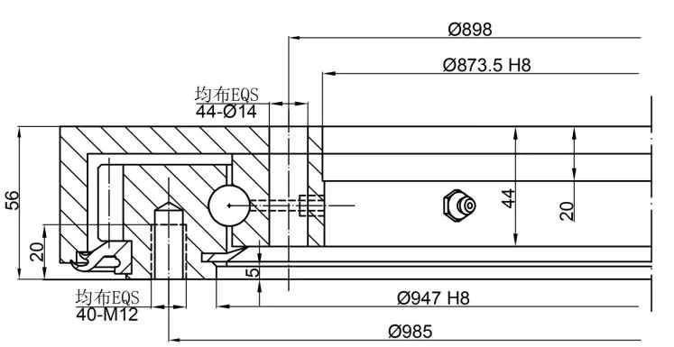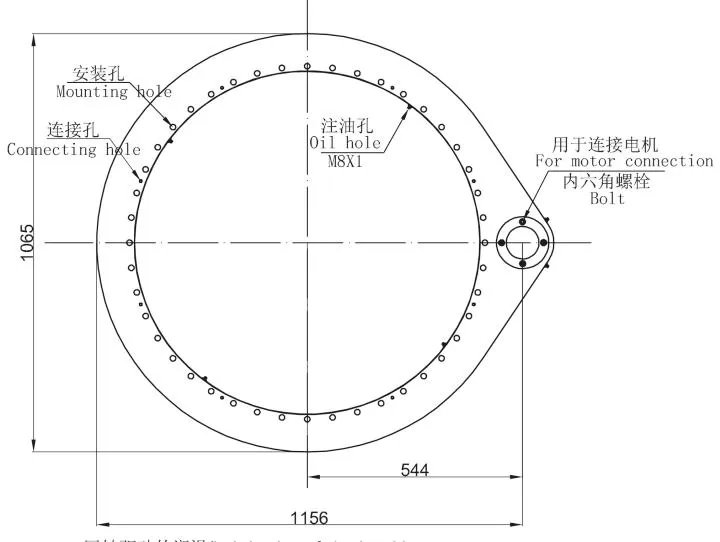 Lubrication of slewing drive; 4 M8X1 grease nipples on the innerring; 2 M8X1 grease nipples on the housing; Slewing drive supplied pre-lubricated.