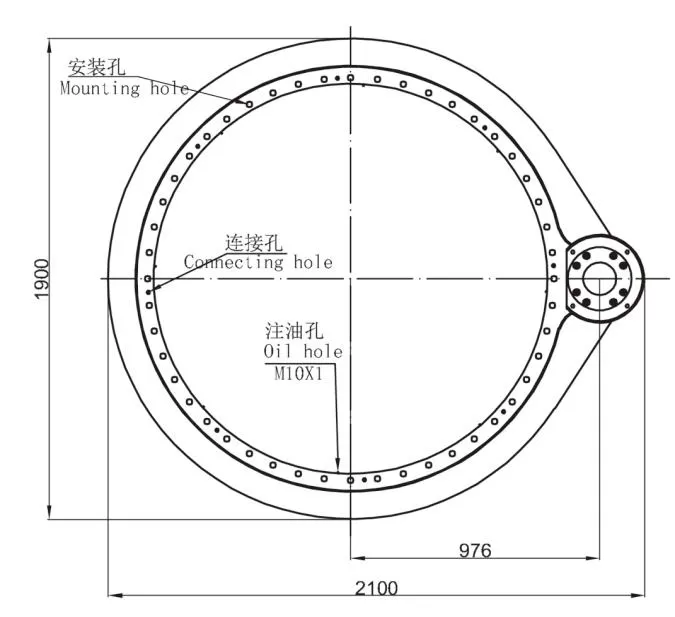 Lubrication of slewing drive; 4 M8X1 grease nipples on the inner ring; 2 M8X1 grease nipples on the housing; Slewing drive supplied pre-lubricated.